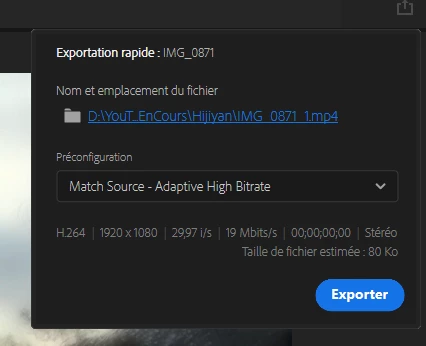 That's the first time I face this problem. I'm trying to export a 26 min video, but the estimated file size is 80 ko ! And the lenght of the video is not recognized (00;00;00;00) instead of those 26 min.