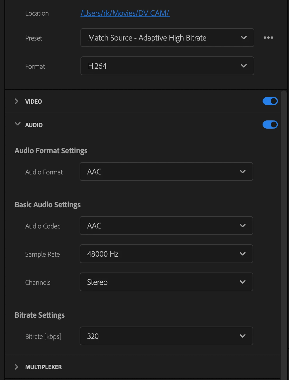 I'm using Adobe Premier 22.6. When I export, the stream 0 is Audio & Stream 1 is Video. This plays on quicktime but doen to play on VLC.