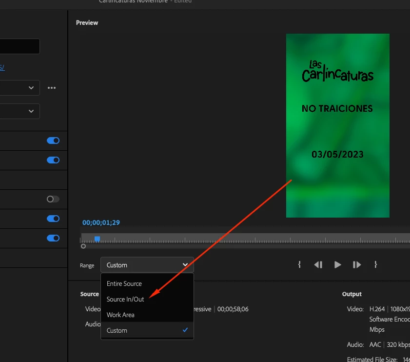 Export Window does not recognize In and Out points