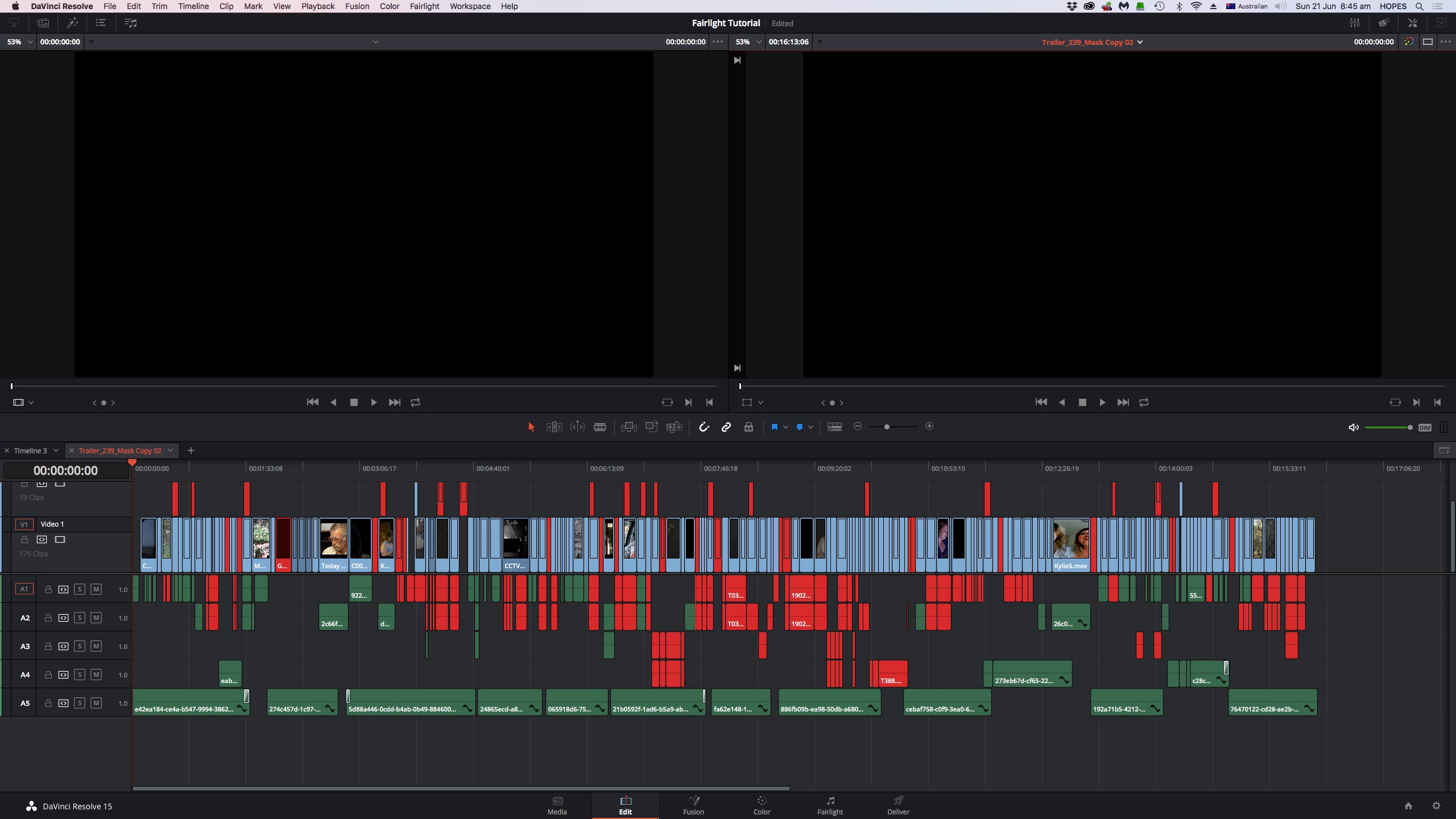 - export EDL (blech!) and flattened video file (double blech!!) and the timeline would not see the original clip and it appears was useless anyway as the empty red-clips in Resolve had no relation to the cut points in the flattened video.