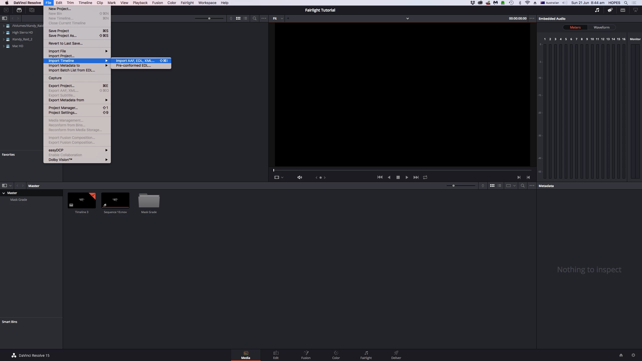export consolidated* sequence of footage to DaVinci Resolve for colour correct