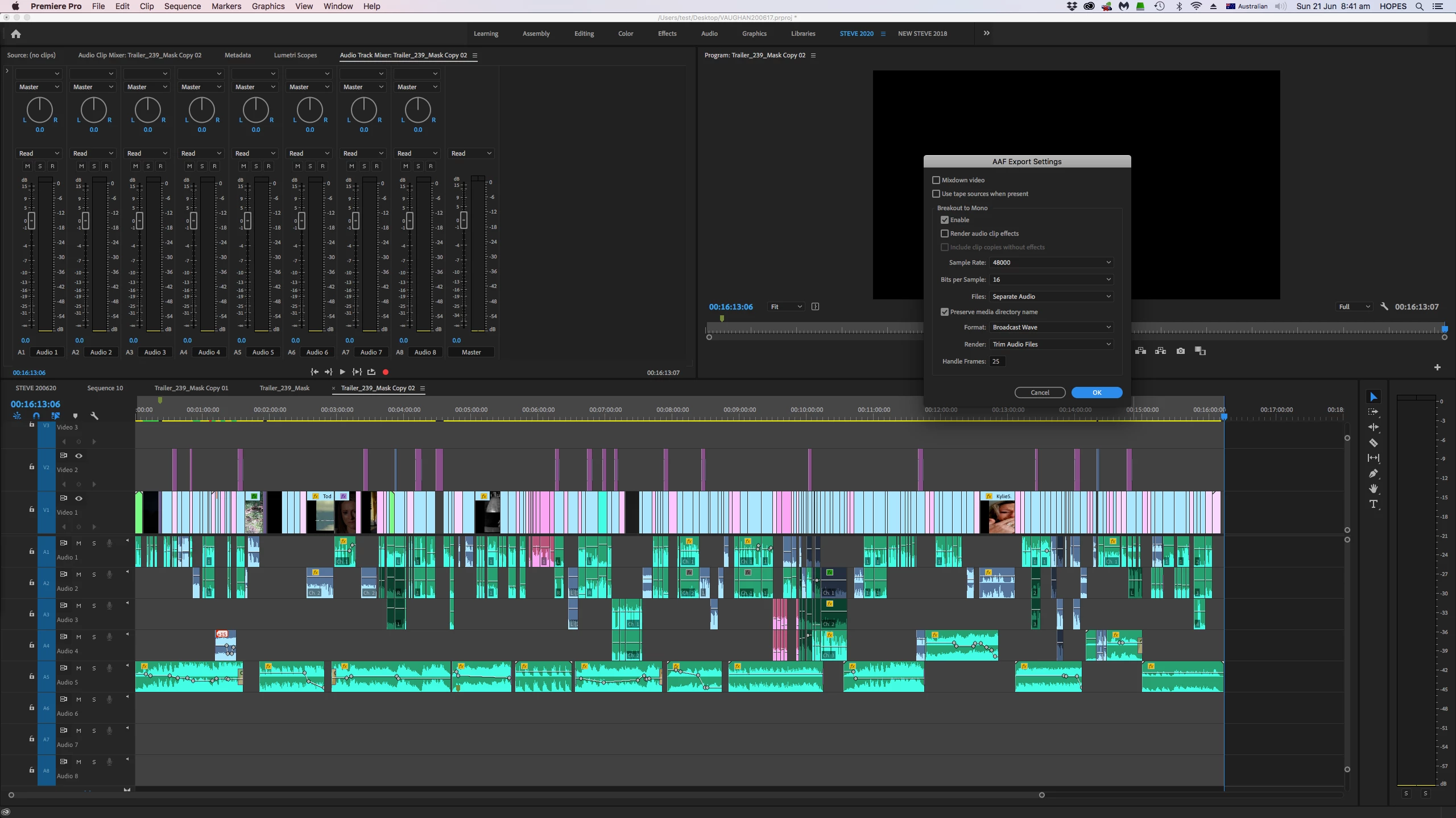 (* note that I have had a lot of problems getting Premiere to play nice with consolidating. I had create a brand new project and import the sequence just to get Premiere to consolidate ONLY the media related to the sequence because "exclude media"’s checkbox had no affect on PP’s desire to make a copy of every, single, teeny, tiny file related to the project. I went through and deleted ALL my proxies but it still made new ones during the consolidate. Then I went and deleted all my media cache files and still PP kept making new proxies during consolidation. Arrrrghhhh! Anyway, back to AAF/XML nightmares… )