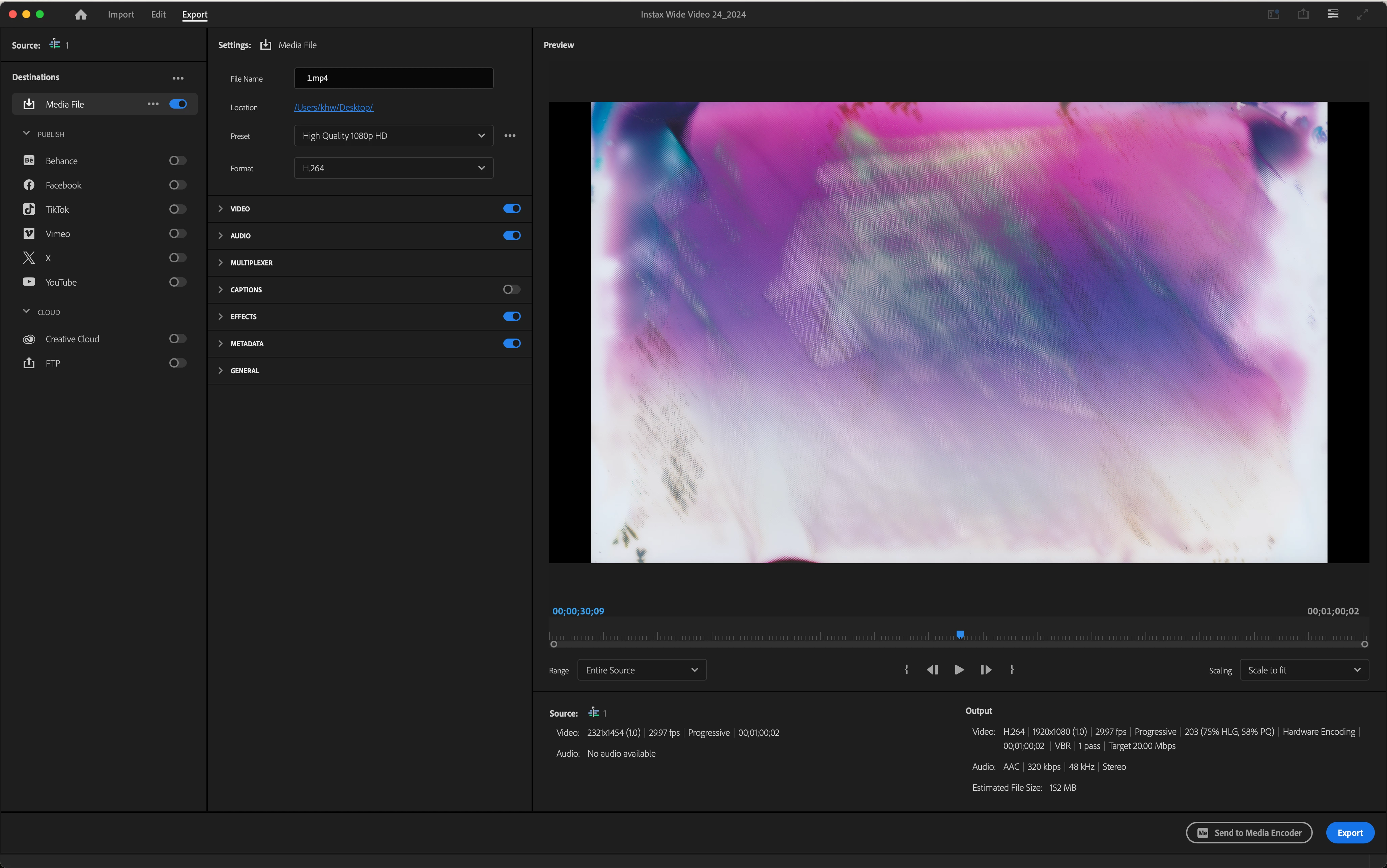 Exporting alters the effect added to the edit