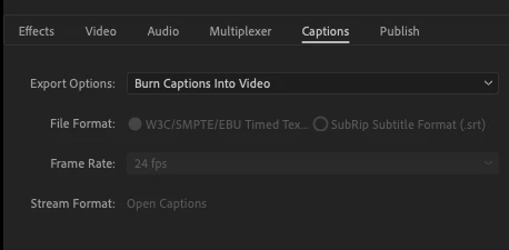 Hi, I'm new to creating my own captions. I created open captions in Premiere Pro and would like to export an .SRT file. However, when I click Export>Captions, the option is greyed out.