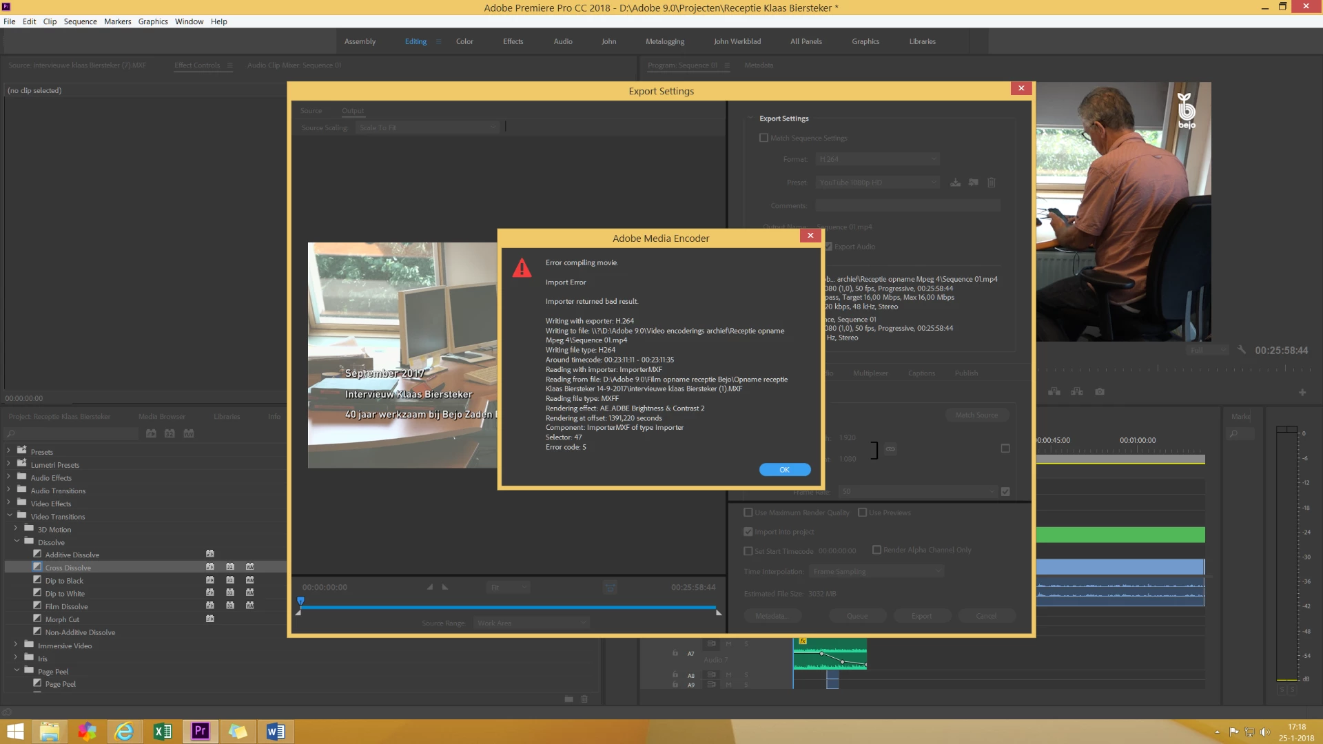 Exporting video give's error code 5