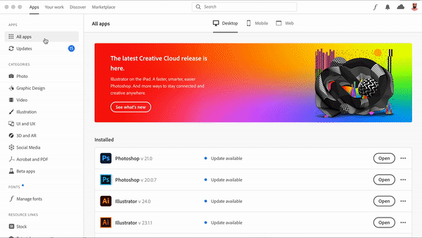 - Open the Creative Cloud desktop application.