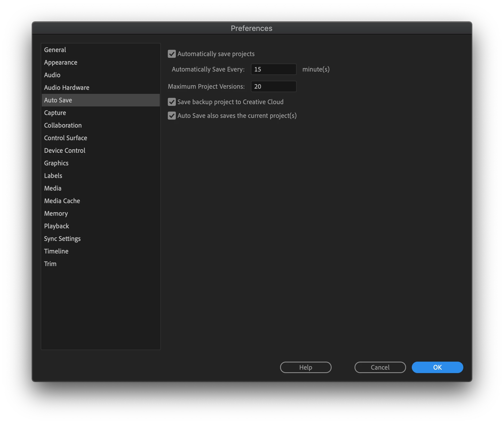 The timeline or sequence you have been working on is rarely deleted or removed accidentally, however, it can happen. That is why you want to enable all the Auto Save preferences, including the one to save a file to Creative Cloud. As an editor, I also use the "Save As" function to create my own set of back up project files.