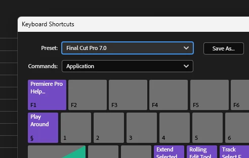 Now, I have found a .Kys file to use the fcp7 shortcuts into premier. But perhaps that .kys file was mac only. Not working in my Windows version.