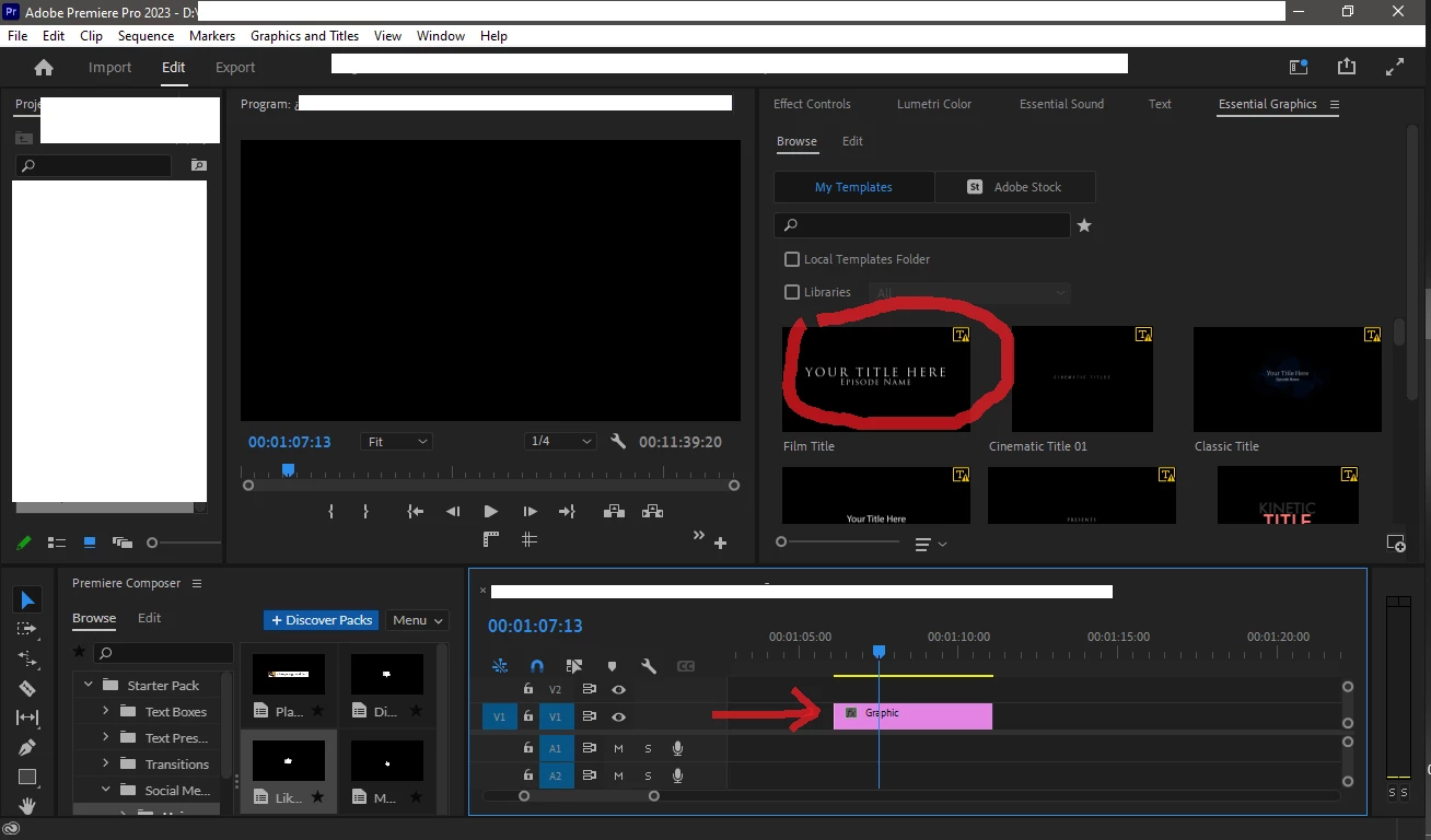 Today when i tried to use the Film Title Template It didn't worked. It didn't add the layers or anything. When i add it to the timeline, only adds a Graphic without nothing.
