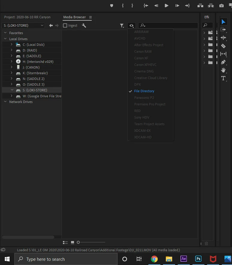 When I use media browser to navigate to this RAID-0 Drive - there's absolutely NOTHING on the drive. I even have the "eye icon" set to showing me the file directory... nothing there: