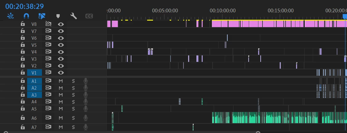 When all of the footage I cut up from Video Track 1/Audio track 1-3 were completely wiped.