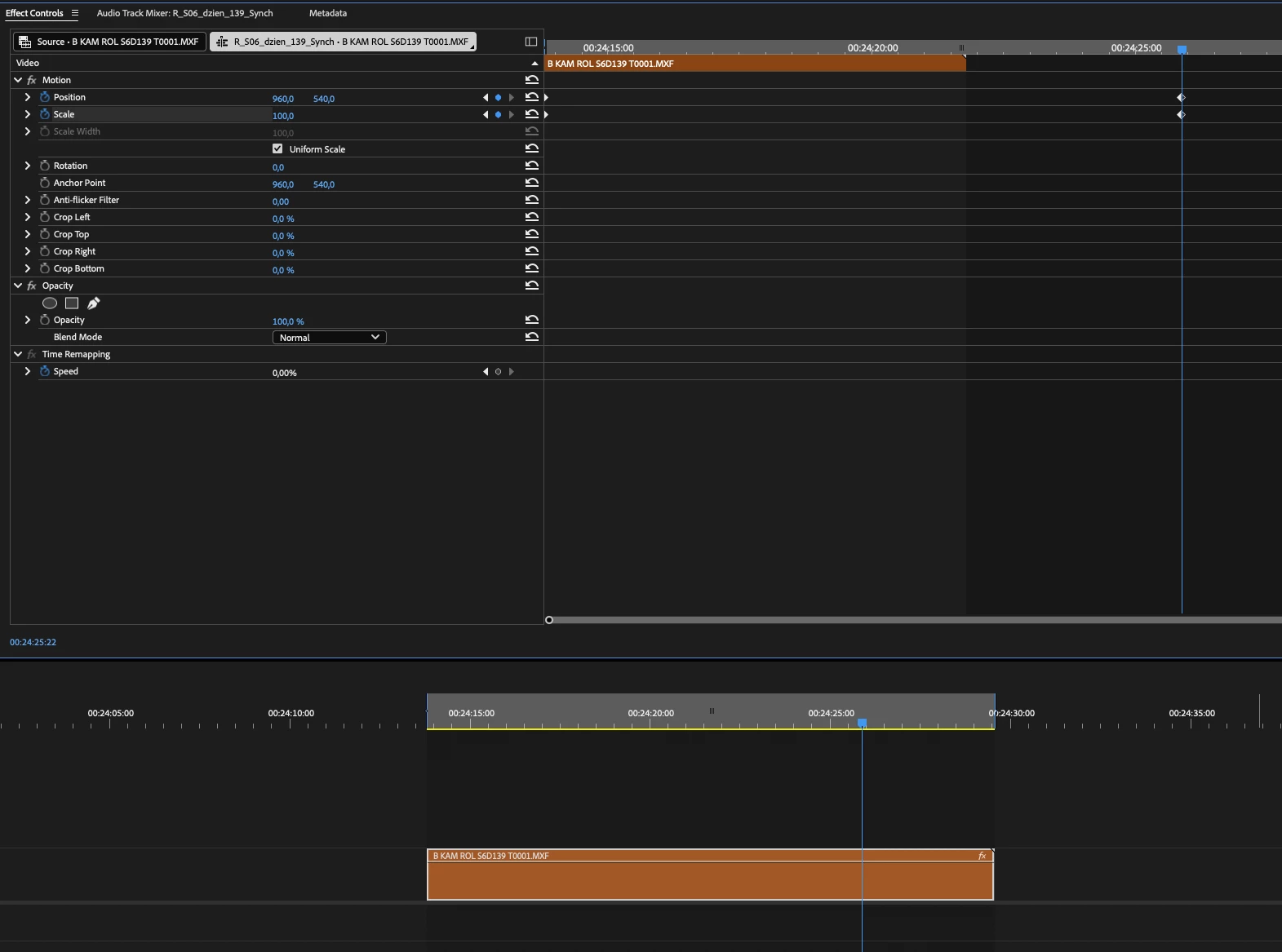 "Frame holded" clip has different duration in effects control panel than in timeline.