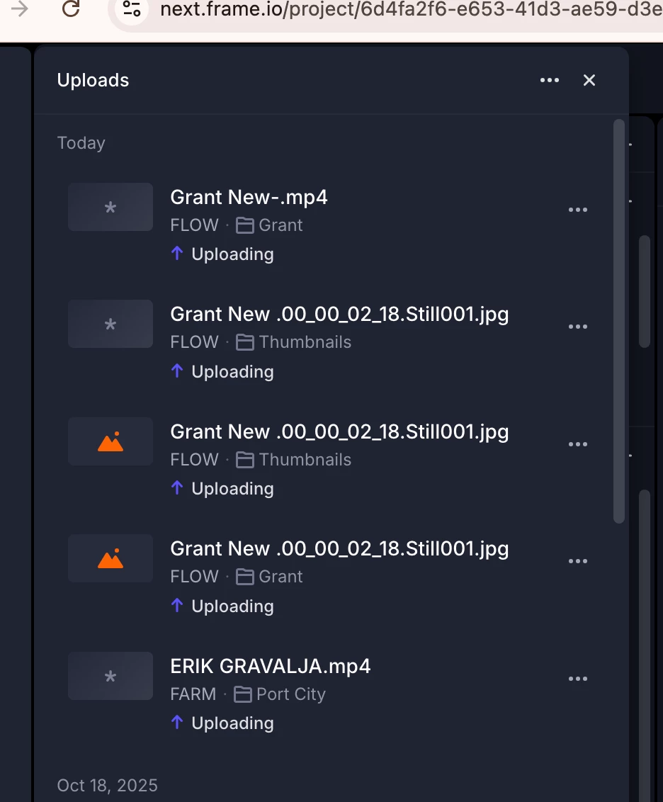 Hiya Everyone, I’m been having issues with Frame.io, uploading timeline content, (uploading and dragging) video files via Premiere Pro Frame-io window or via a Frame project folder in a browser window. I get the video to show it is uploading to 98% to 100% but it never finishes!