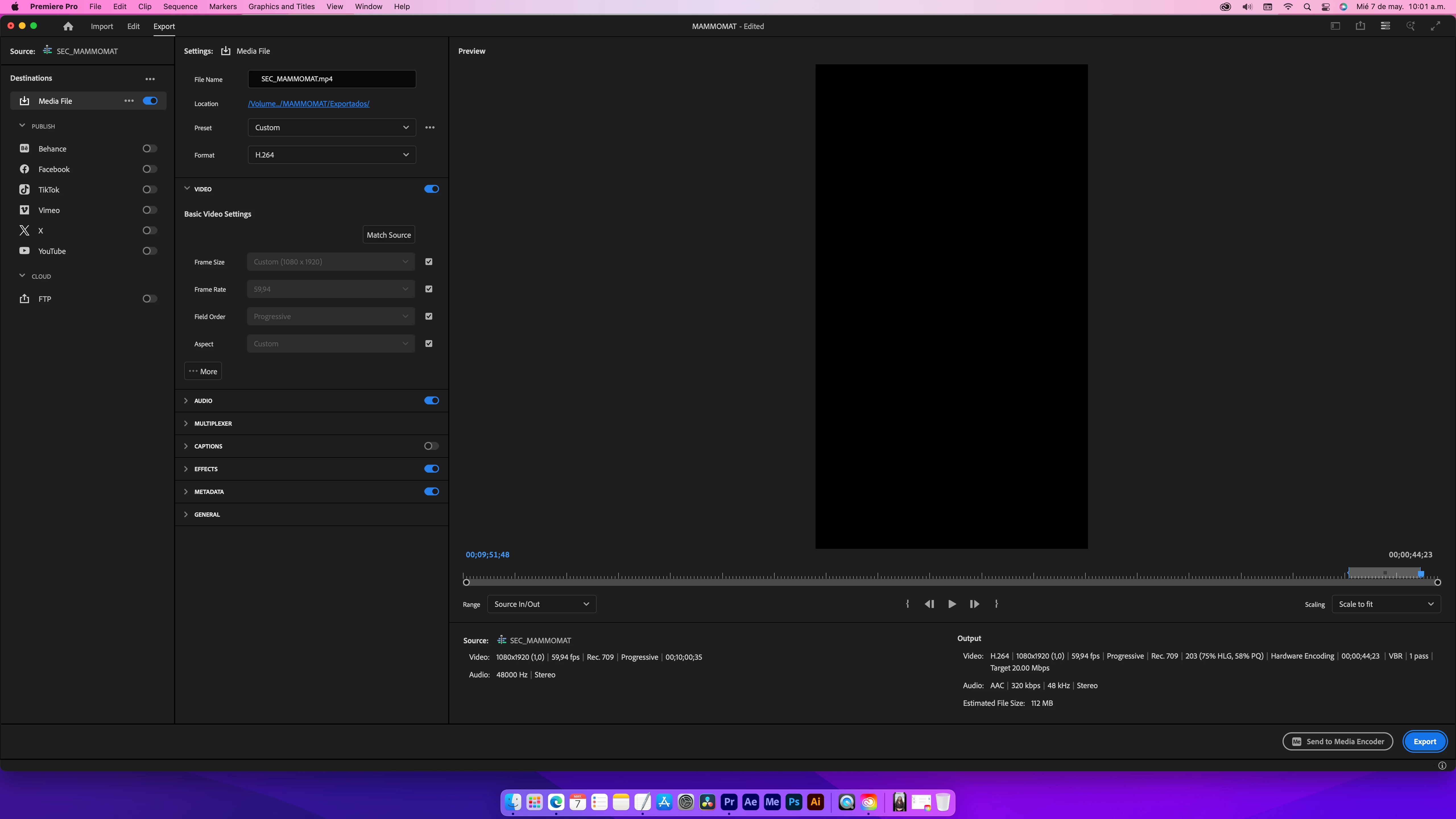 - En export veo que esta en Range: Source In - Out señalado para que solo me exporte la nota o full de la persona.