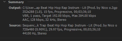 (p.s. I'm not sure if this will help, but the Output name ended with .3gp)