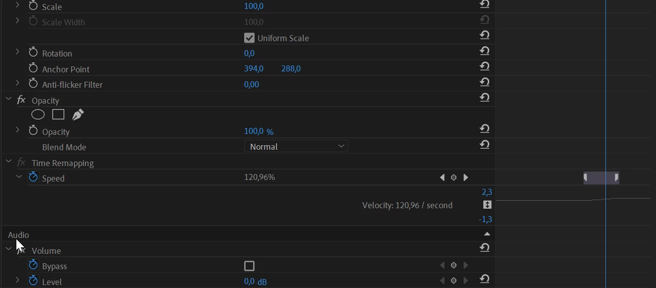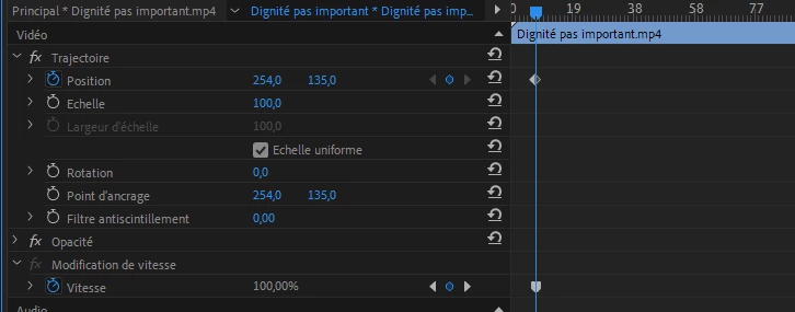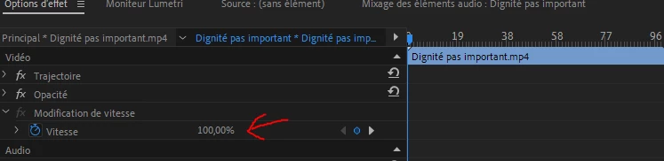 I have a little problem recently with adobe premiere pro. To make a long story short, I can't change the speed of the videos via the "effects options" tab where it says "Fx time remapping", the speed percentage, which is usually in blue and which I can modify just like I can modify the positions for example, but here it is in grey and I can't modify it.
