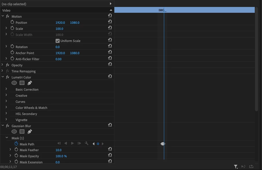 It gets weirder. If I click elsewhere on the timeline, so that the current clip is no longer selected, the Effect Controls panel retains its state from the clip I was working on. Even if I click on another clip, it's still showing me the same Effect Controls panel view from the previous clip that was selected. In order to restore full Effect Controls panel functionality, and to reset the frozen state of the mask tracking, I have to close the Effect Controls panel and then re-open it, at which point everything behaves as normal. This is fully repeatable on multiple clips. The clips have a Lumetri Color filter on them, and the blur is in the effects list below that filter. Not sure if that's relevant?