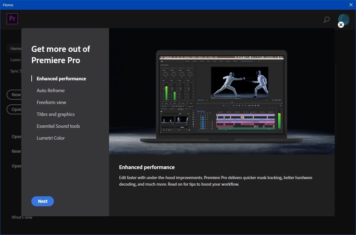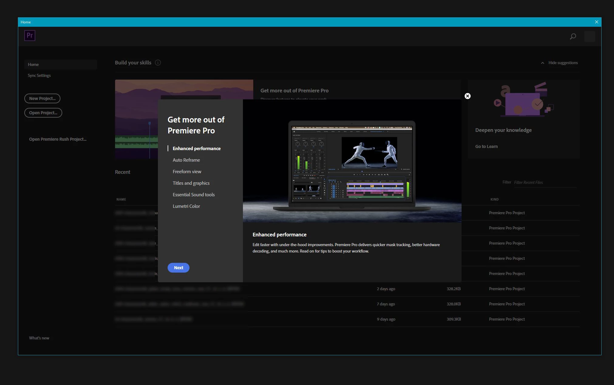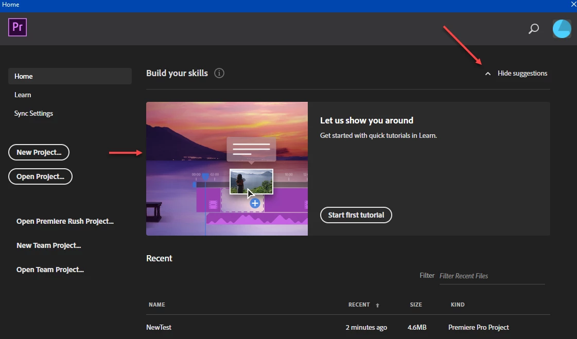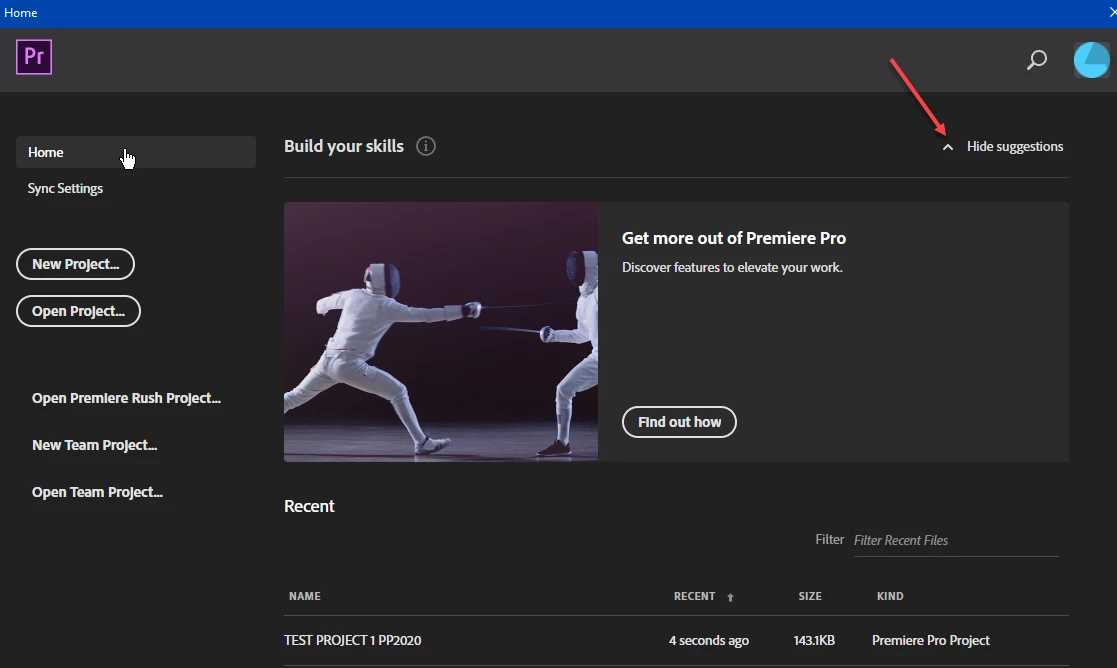 Get rid of "Get more out of Premiere Pro" startup screen