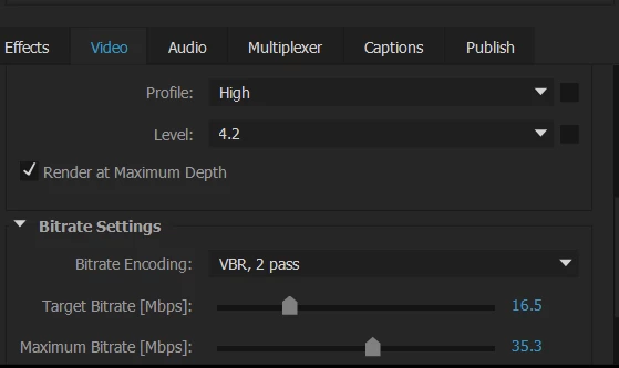 I guess the last thing is... My Target Bit Rate. That was a big discrepancy with most people. The Max Bit Rate hovered between 32 and 40 for most so I put mine at 35. But some people had their Target at 8, or 16, or 32. I decided to go with 16, that's the YouTube suggested one. I don't know if that's what's making a difference. One guy just had them both set to 32...