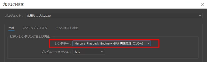 プロジェクト設定でGPU 高速処理を選択しておりNVIDIAのドライバも最新にしてみましたがダメでした。