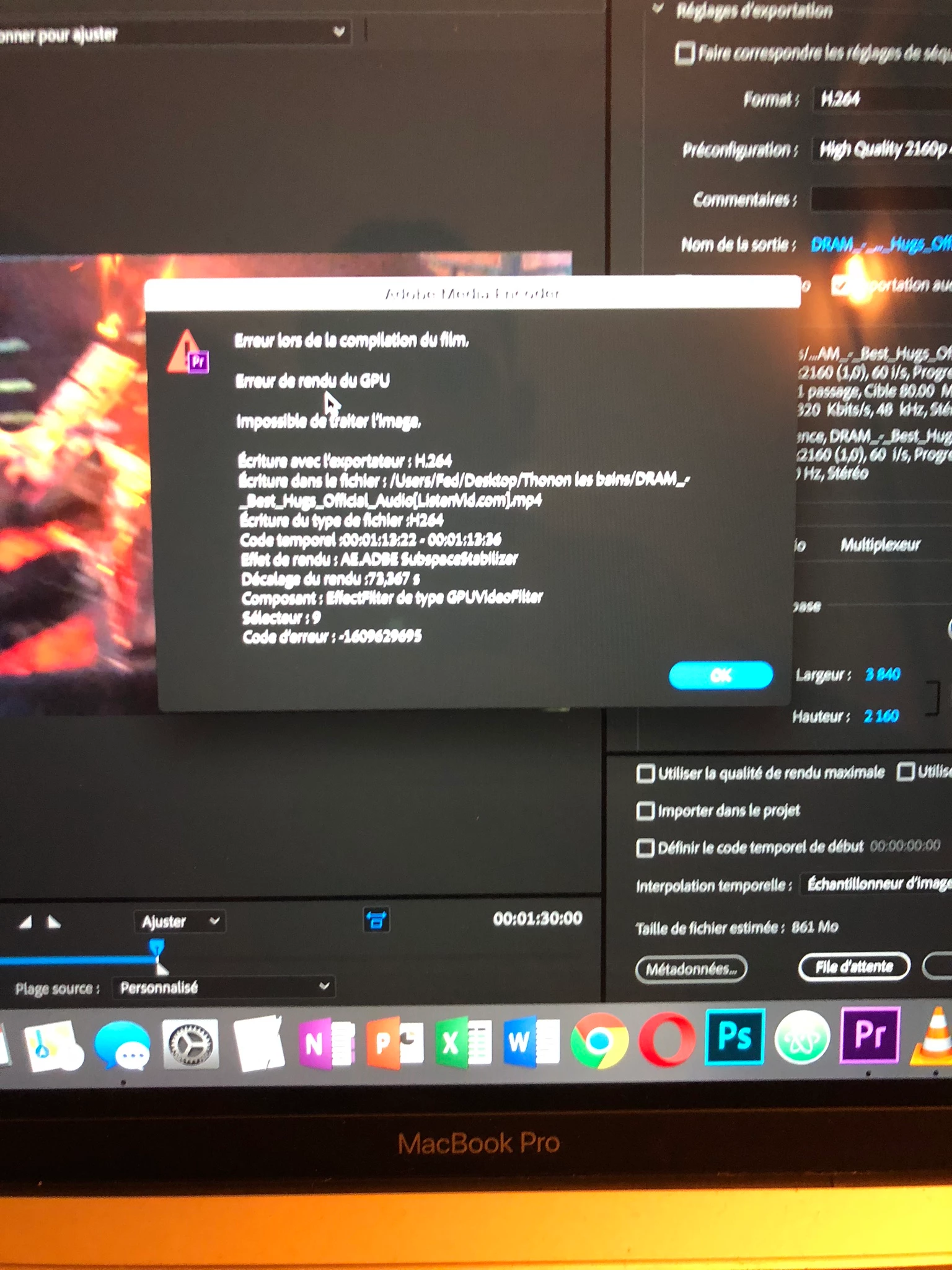 I then passed my sequence at 60fps and I had no problem to make my renderings. On the other hand, I can not export my work, I have the following error message each time: