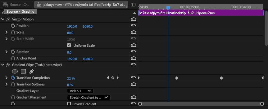Hello, I’m attempting to use gradient wipe as a fade in/out of text and photographs over video footage but i’m finding that for some reason when i use keyframes in the effect it creates this strange and unwanted cropping of the image - at first i thought i might have accidentally created a mask or something but that isn̓t the case. Hoping someone has dealt with this before and might be able to offer some advice or a correction that i may have overlooked. I̓ve attatched an example of whats happening