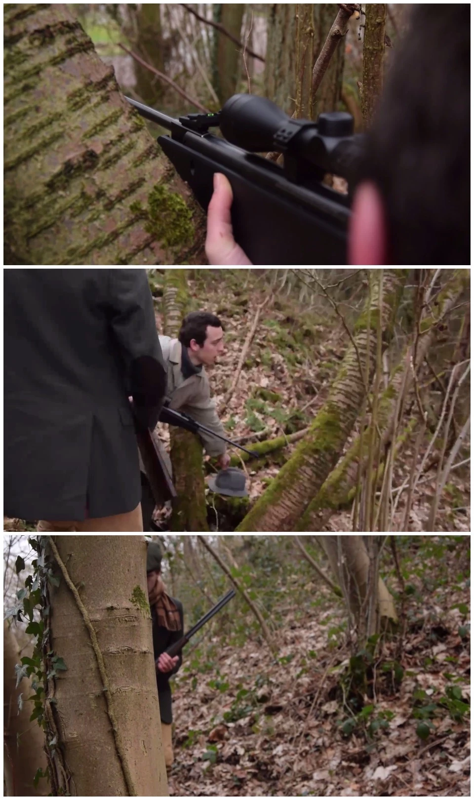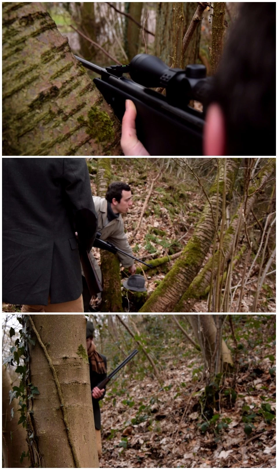 And those are 3 screenschots of the project exported from Premiere, alos played on VLC (you can see the pixels on the jacket in the second image and the washed out colors of the trees and the gun):