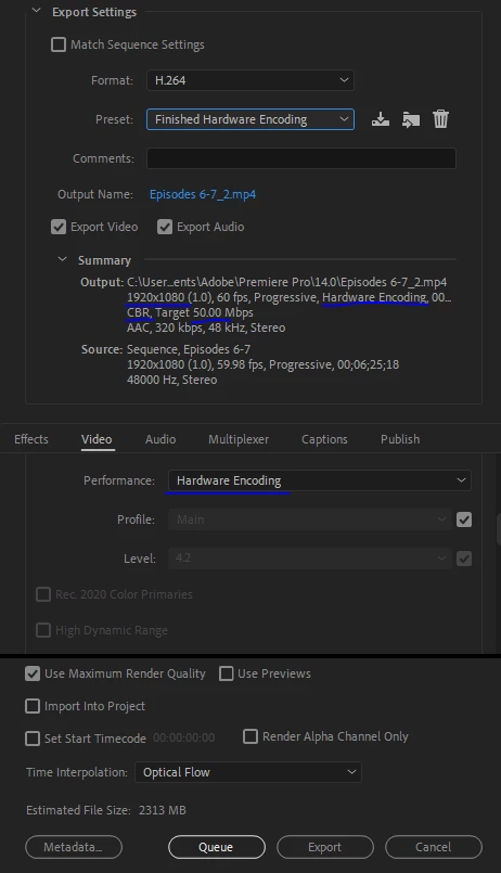 Hardware Encoding Unavailable at High Settings Premiere Pro 2020