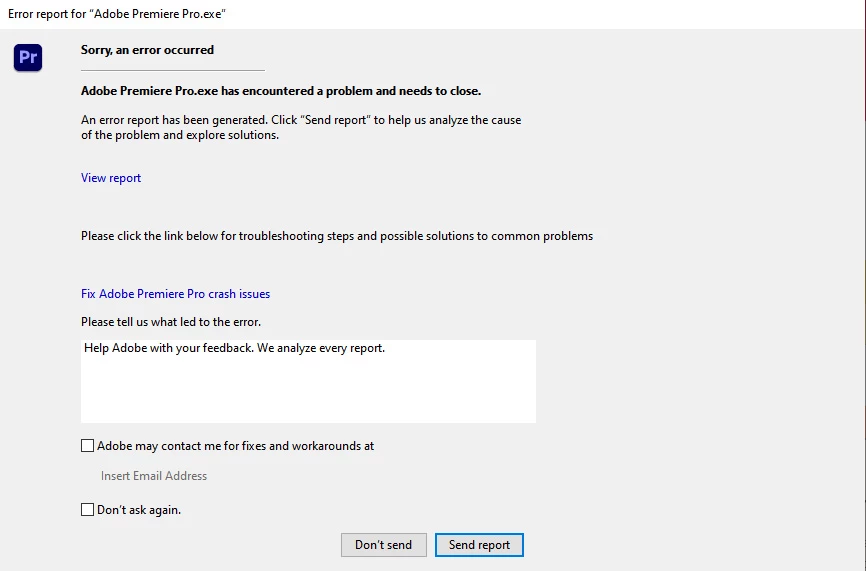 I recently upgraded to PP25 and it was working. But, I think that I got a Windows 10 update and after the update Premiere Pro 25 won't open. I get an error report (see image). I have had 2 sessions with Adobe help people.