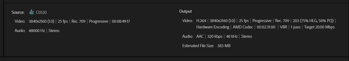 Can someone please tell me why? I assume that it has something to do with my export settings. Here's the summary of those; as you can see, the export matches the source -