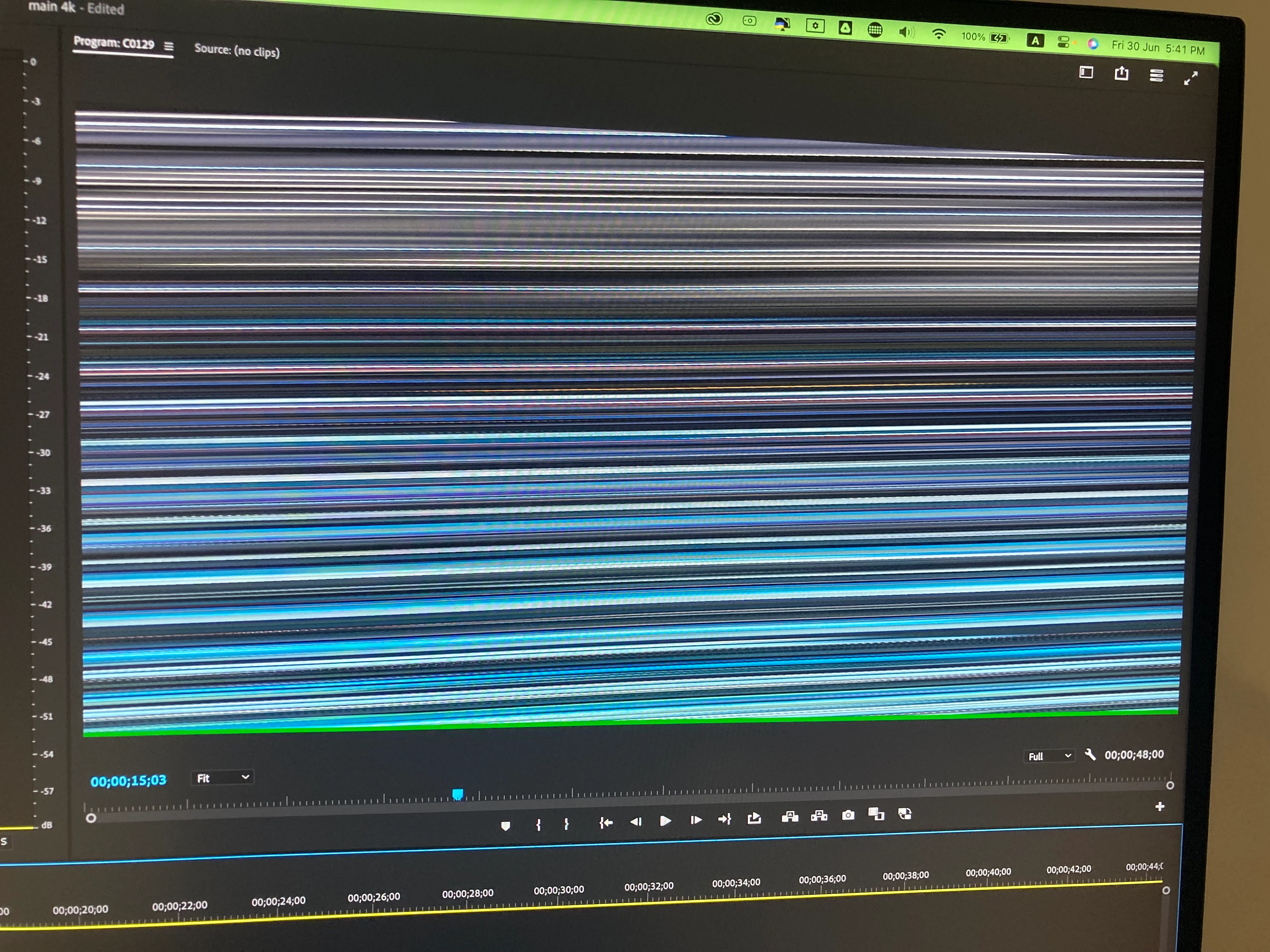 After I add my mp4 files to the project timeline this is what I see whenever the video is paused. If I start playback it plays just fine but whenever it's paused it looks like this. Also, if I render it, this is what the video looks like, it's just a mess.