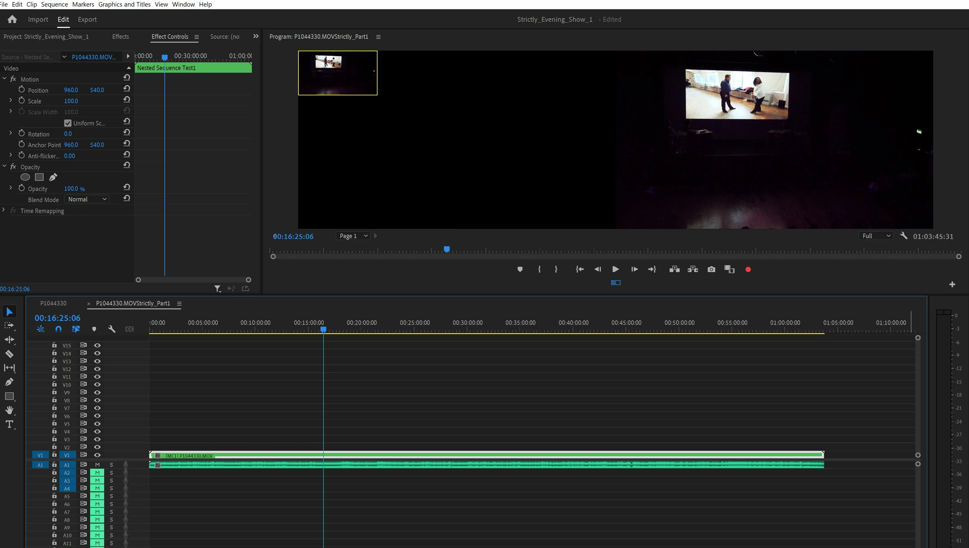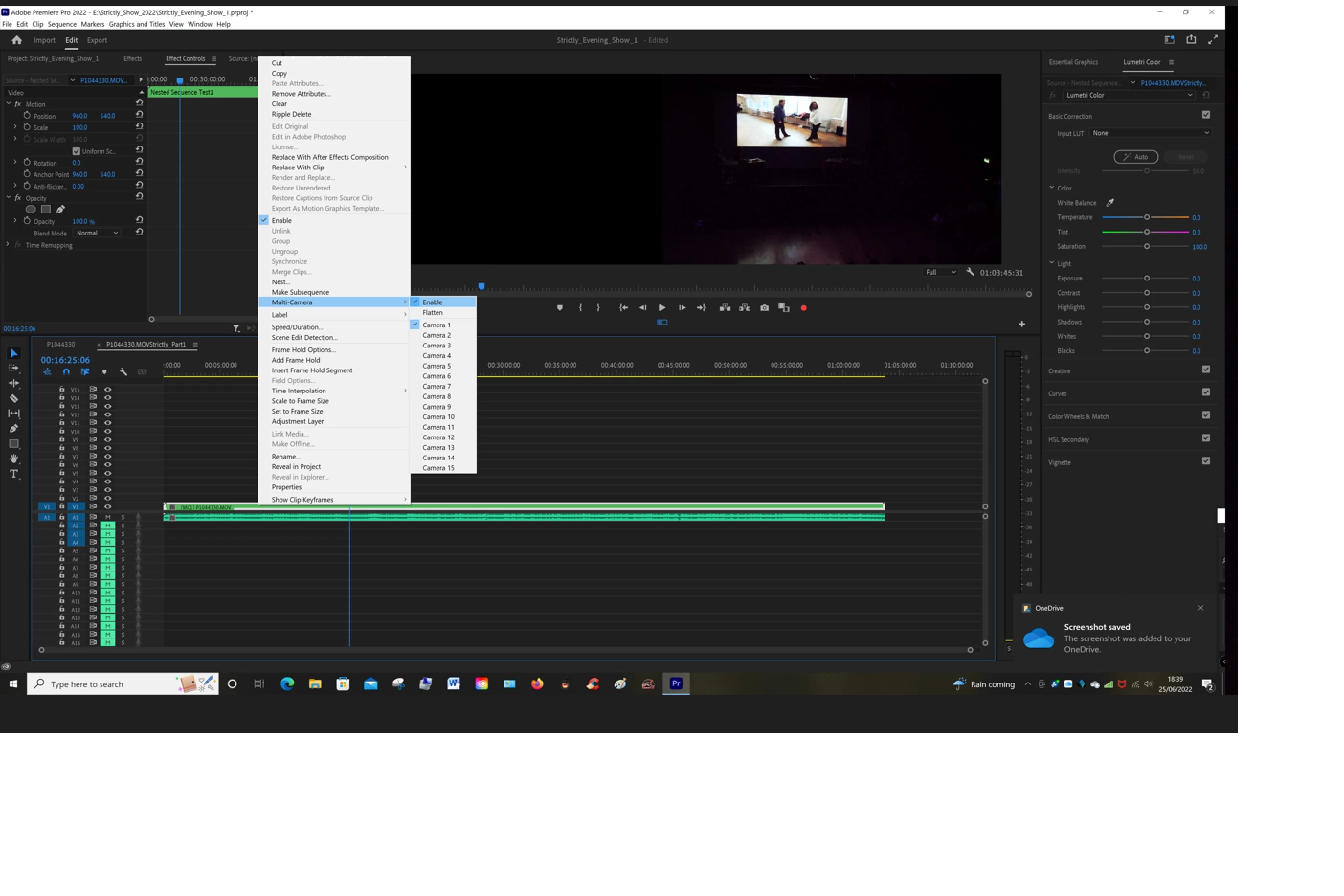 Now - the bit that goes wrong is because I want a final HD 1080p edit, the 4K clips are too large of course - but when the Nested multicam sequence is dropped into the timeline I needed to open up the Multicam nested sequence to adjust scaling on the 4 K clips as I require.
