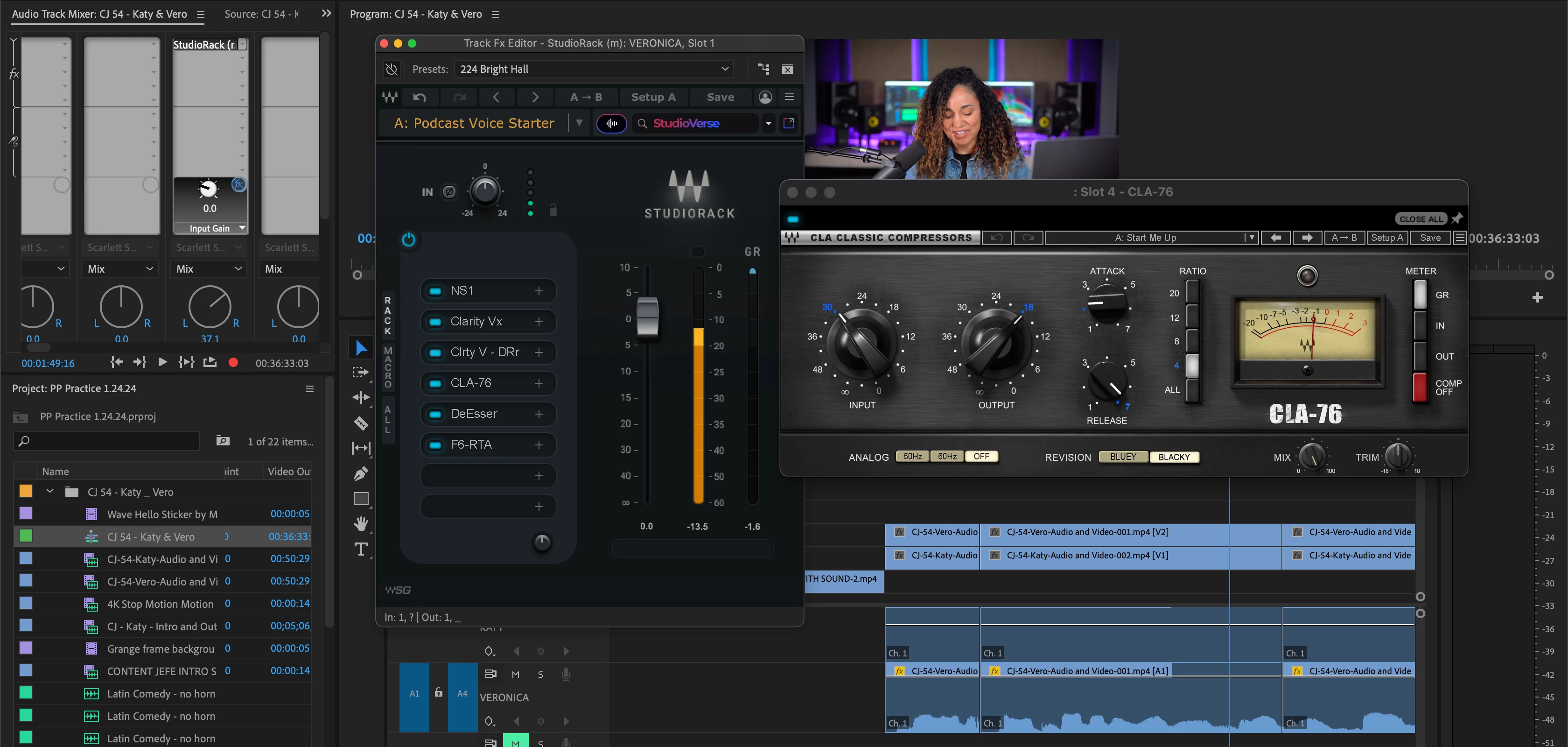 The blue power button and all of the blue lights indicate that the plugins are turned on. However, when I play the audio, the plugins don't function. For example, the needle in the CLA-76 compressor doesn't move so that's how I know for sure that it's not working correctly. The StudioRack with all of the plugins work perfectly in Reaper but I can't figure out how to apply them to an audio track in Premiere Pro. I must have a setting wrong somewhere. Does anyone know how to set up Waves plugins correctly in Premiere Pro?