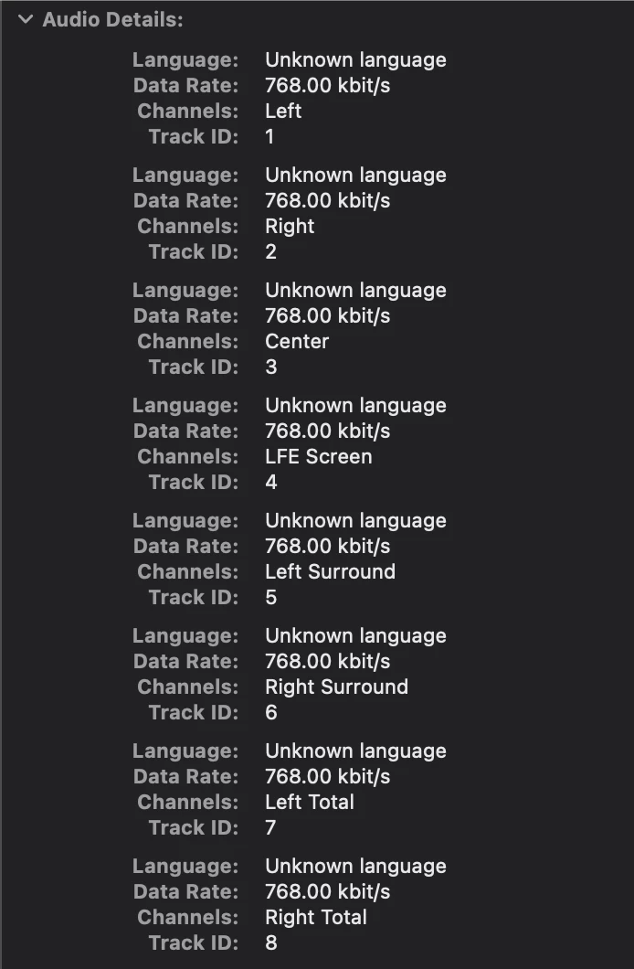 I want to export ProRes MOV which have labeled by custom name(for example : LFE screen) and discrete audio channels one channel per one track, like above screen shot.