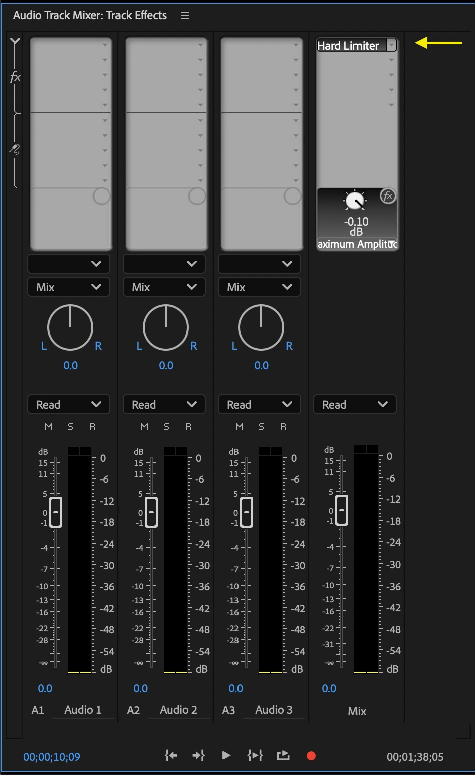 I'm trying to apply a hard limiter to the master track. How do I do this? I've been trying to drag and drop the Hard Limiter effect from the Effects panel --> Audio Track Mixer master track. It won't let me do that.