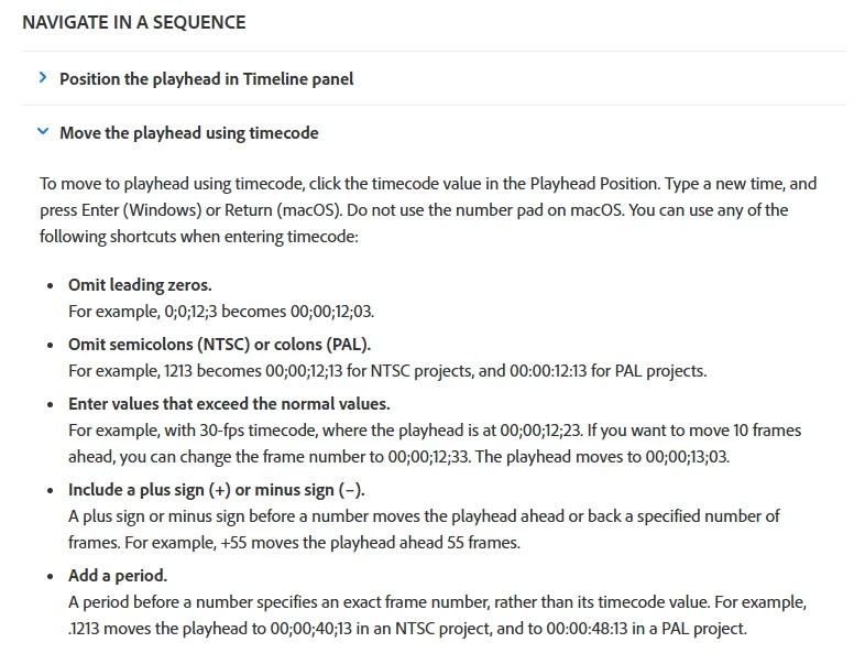 I'm aware that I can type in digits using the numpad and they will automatically be typed in the "Playhead Position" field in the timeline, but when I do this I can't also enter colons or semicolons, so I can't enter a valid timecode.