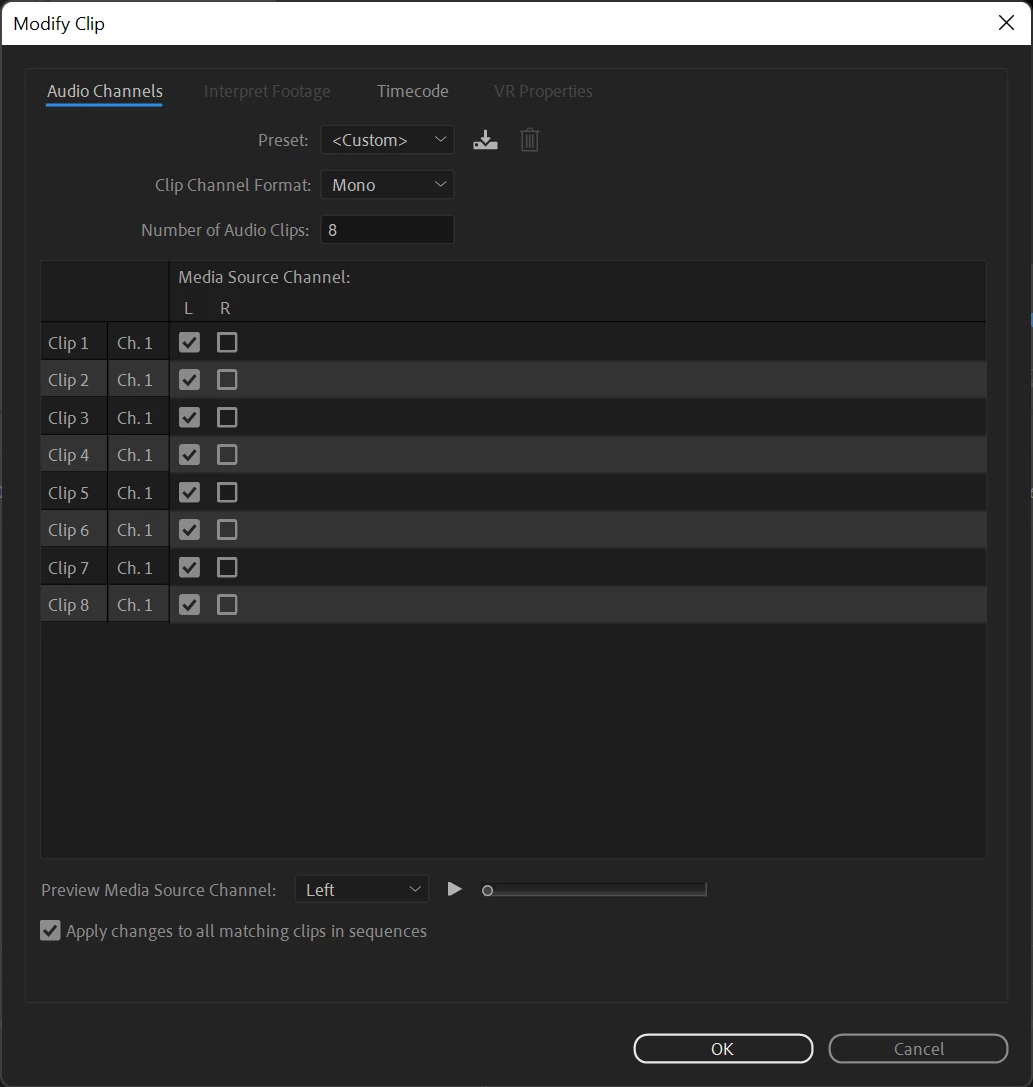 When I r-click on a video and choose New Sequence From Clip the audio channels are always reset to stereo.