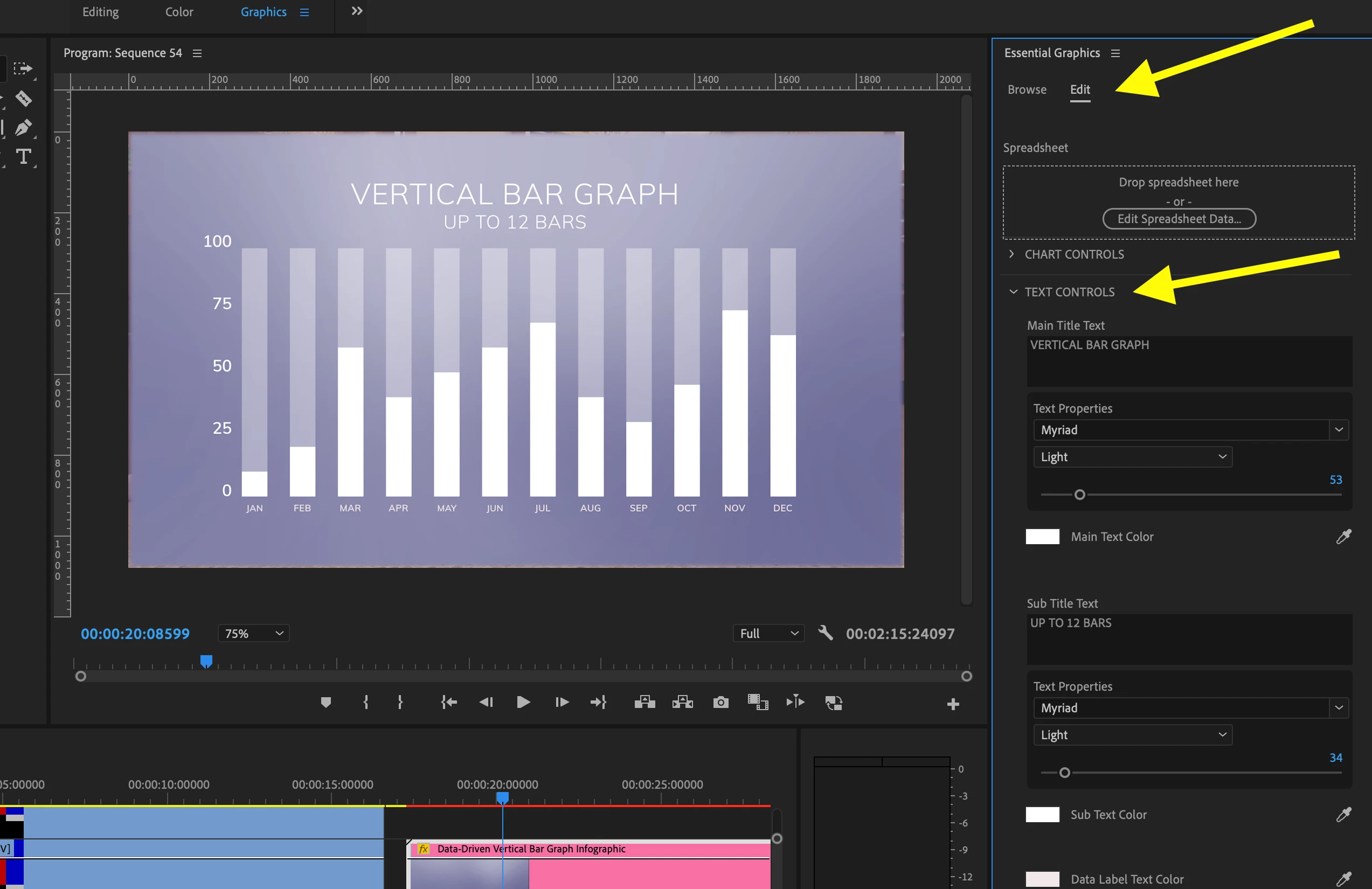 Click on the graphic to select it on the timeline, then go to the Essential Graphics Panel and click on Edit.