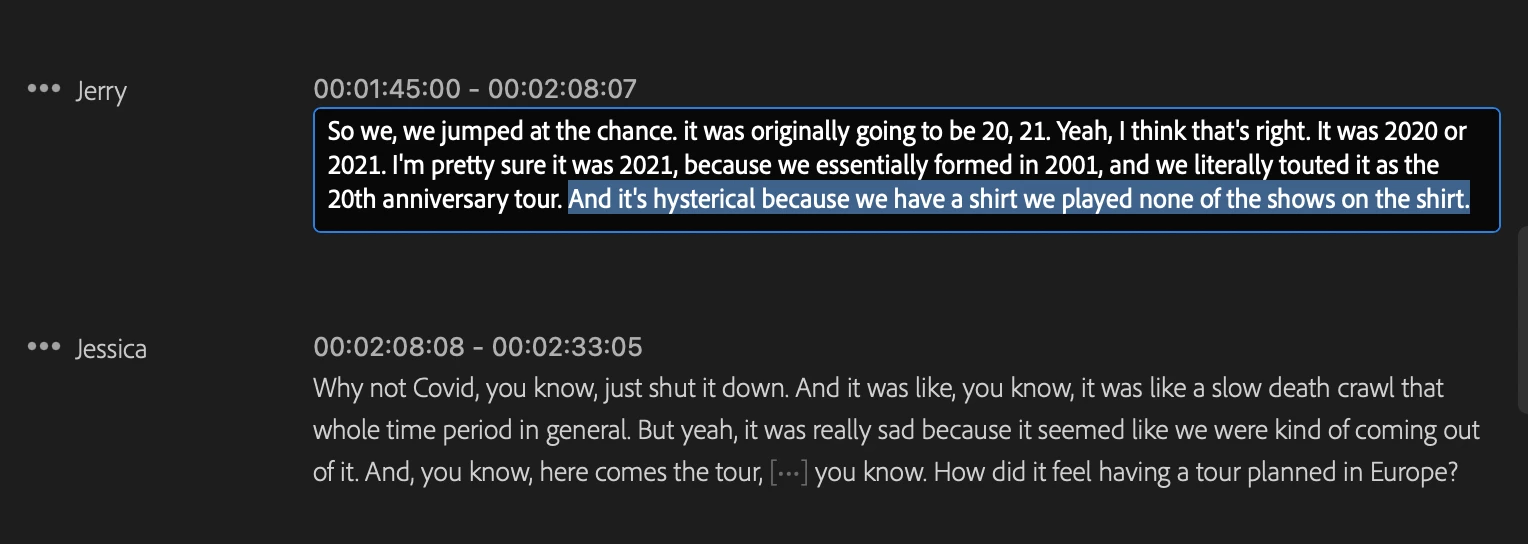 So I'm editing text in the transcript, but there is a second person talking in the text for a different speaker. I have no clue how to change the speaker on selected or highlighted text. I would like to do this because i want to export a transcript and having the correct speakers is important. Any help would be really appreciated thank you.