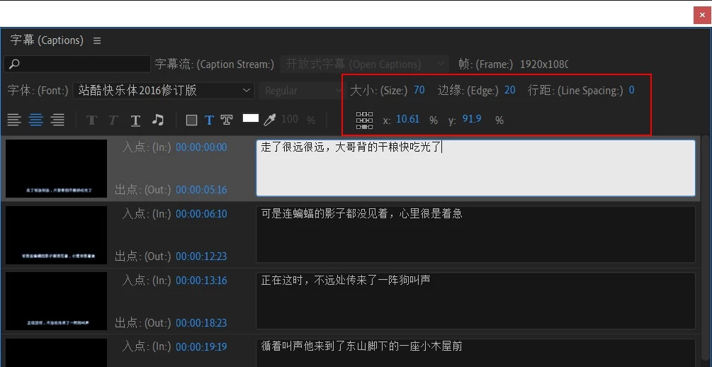how to adjust letter-spacing or words spacing of open Captions in Adobe Premiere Pro 14.0.0(572)