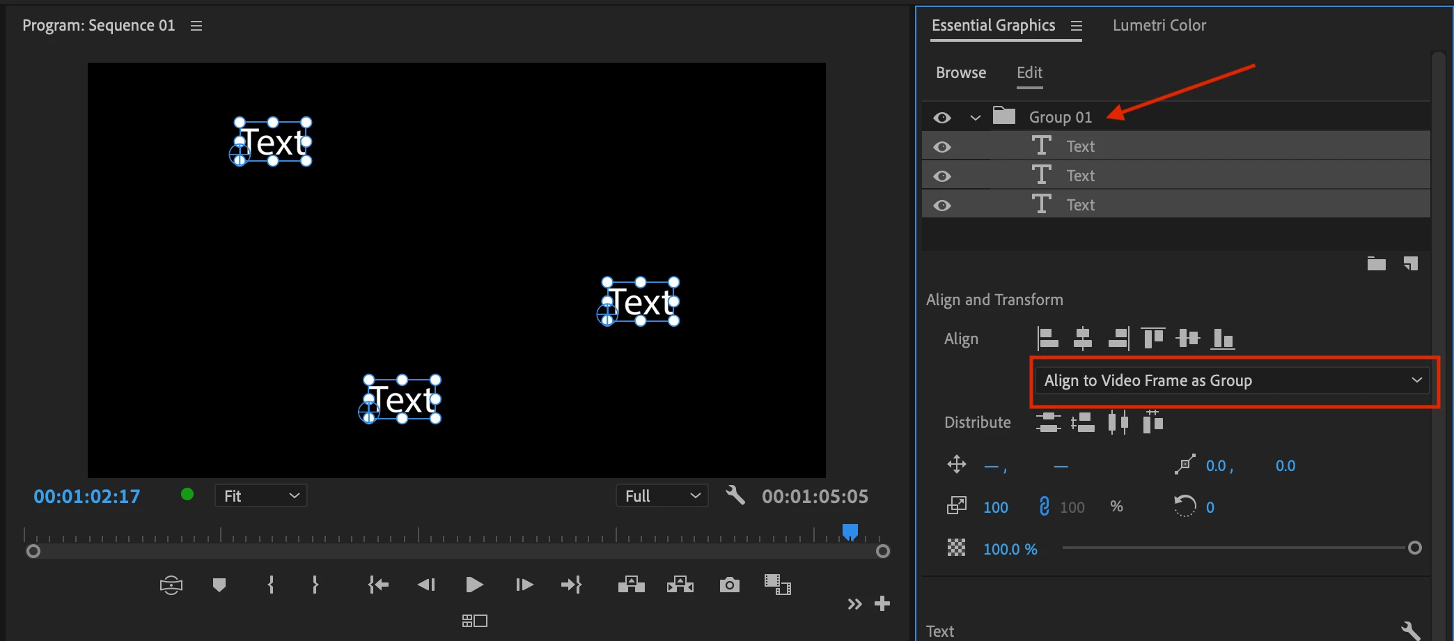 I'm pretty new to Premiere Pro, and I can't get my text (seperate boxes, same layer) to align properly. I made a Photoshop mockup. Say you start with this.
