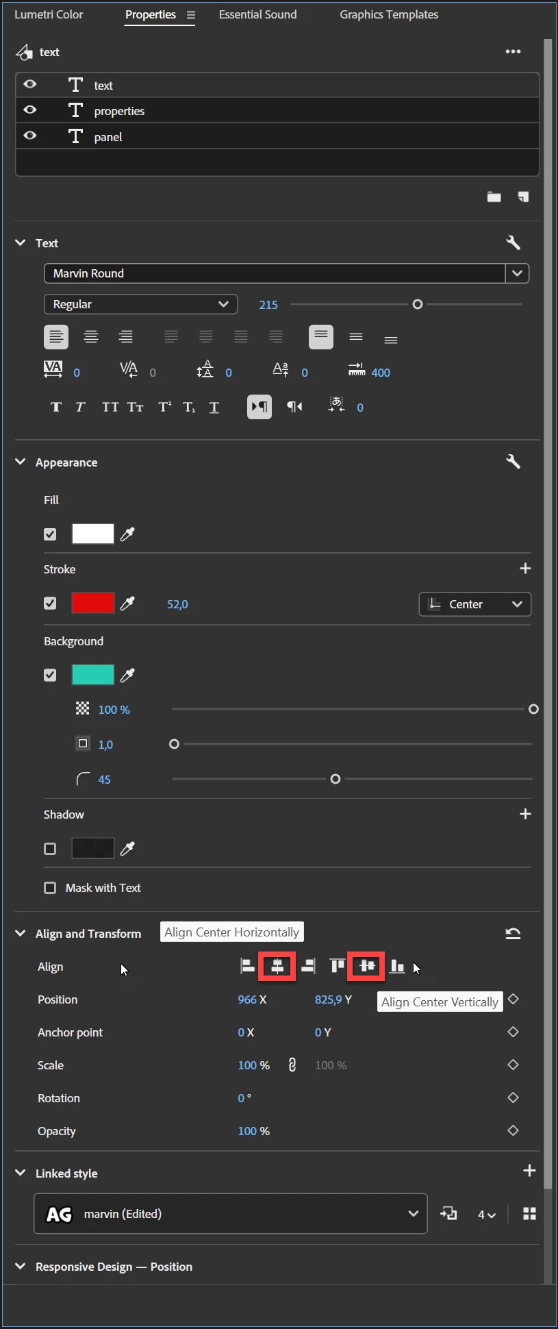 How to center text in the latest version of Premiere Pro?
