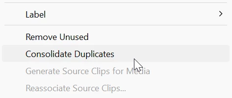 How to consolidate duplicate media in Project Panel and relink sequences?