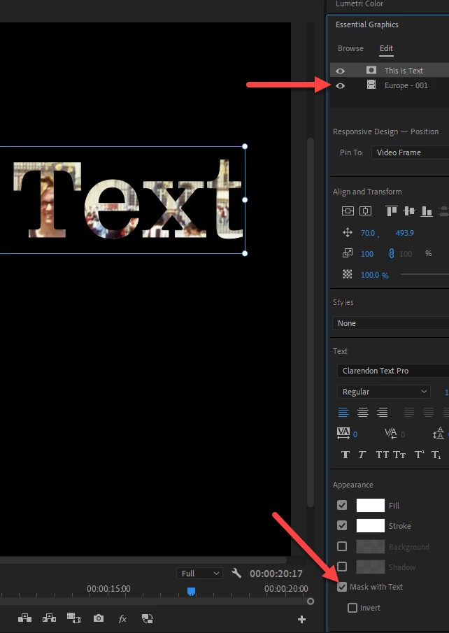 How to fill in text with an image in Premiere Pro 2022
