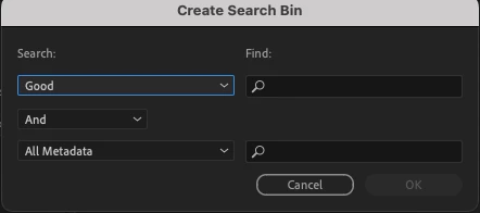 Now I would like to create a search bin to filter out all "good" clips.
