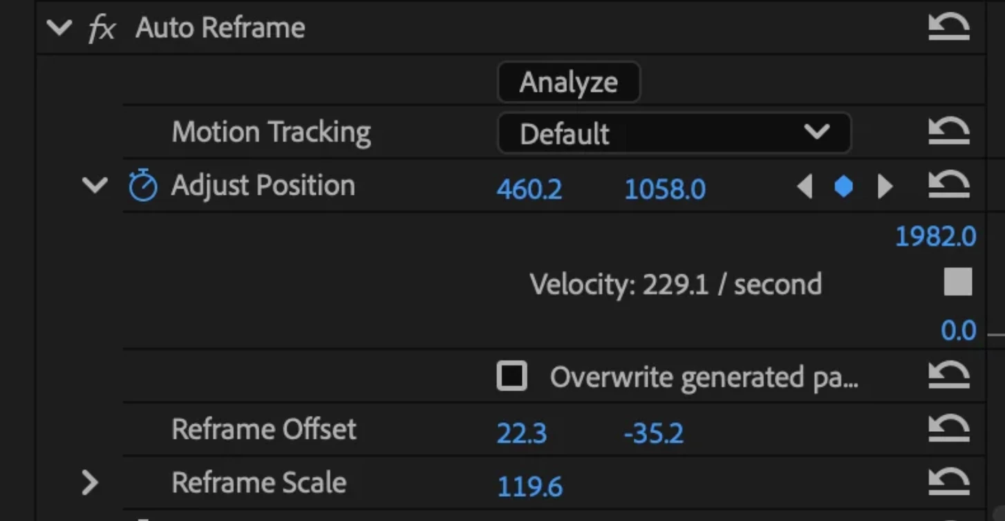 Using the image as a guidance, when I click on the 460.2 for example it moves a single keyframe left/right(horizontally). If I move the 1058.0 it speeds up or slows down the transition. But when I go to the Reframe Offset, it changes the vertical offset for the entire frame. How can I do that for a single keyframe? Thanks!