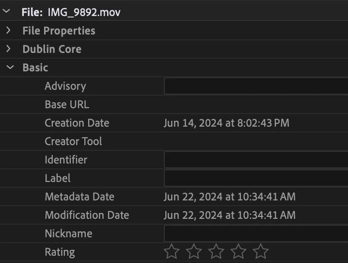 June 14th is the date modified date, but its showing as the creation date in premiere. How do you make it so that the creation date metadata displays the creation data metadata and not the date modified metadata? thanks.