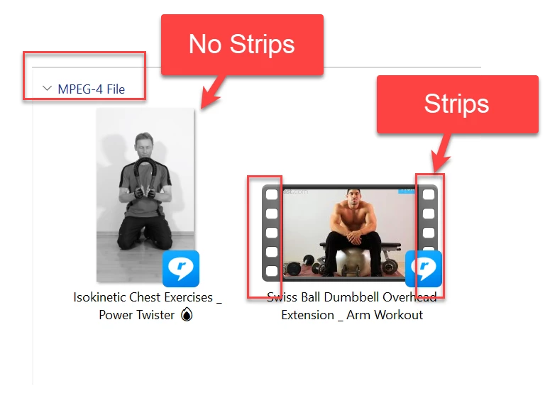 These are two video files in Window explorer. One is without strips & other one is with strips. Is it possible to determine this (without strips & with strips) using APPr?