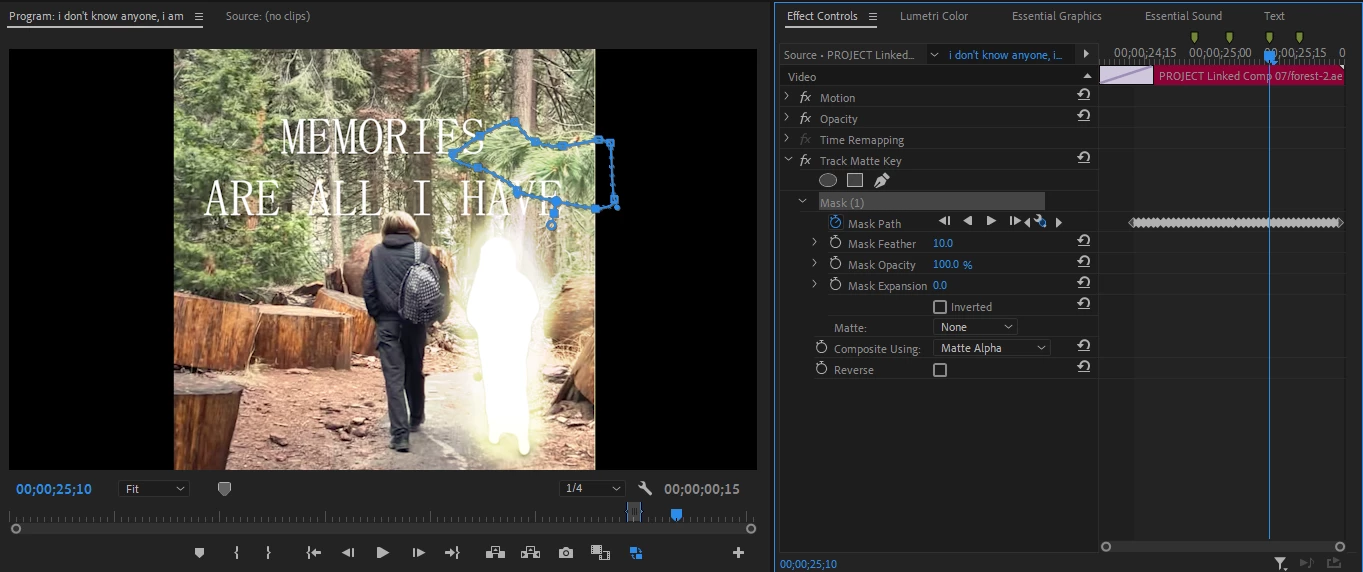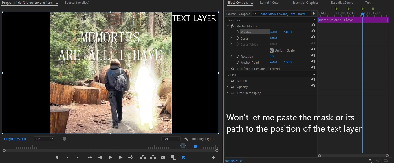 So I have a text layer on top of my background-video layer. I traced an object on my background layer and created a masked path of it. And now I need my text layer to follow the same path, so it looks like the text is stuck to the object. Hopefuly I wass able to describe it correctly.