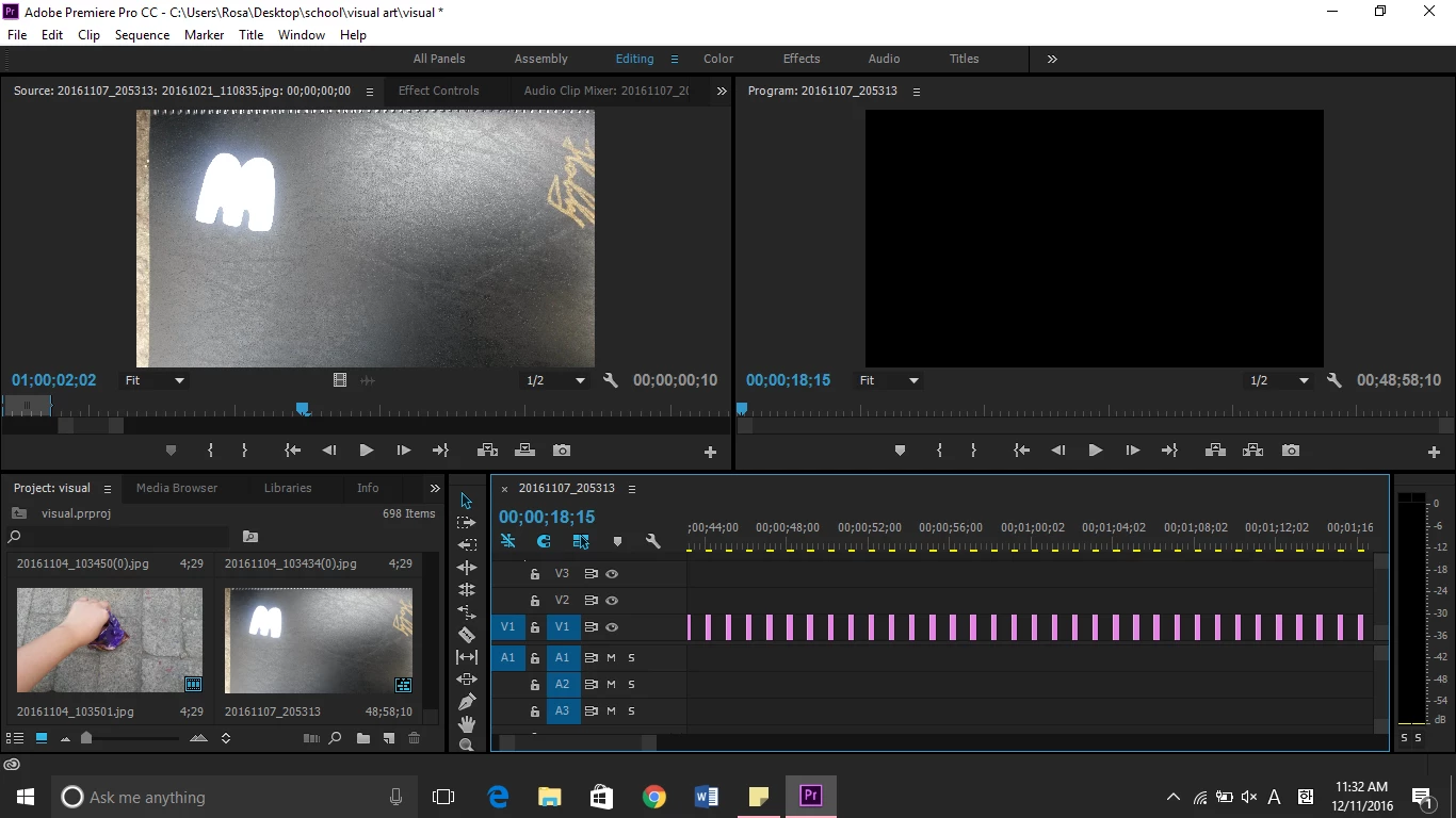 I have hundreds of pictures that im editing and when i shorten the duration of the photos they become all separated and i can't put them all together one by one. is there any way to put them all together at once?